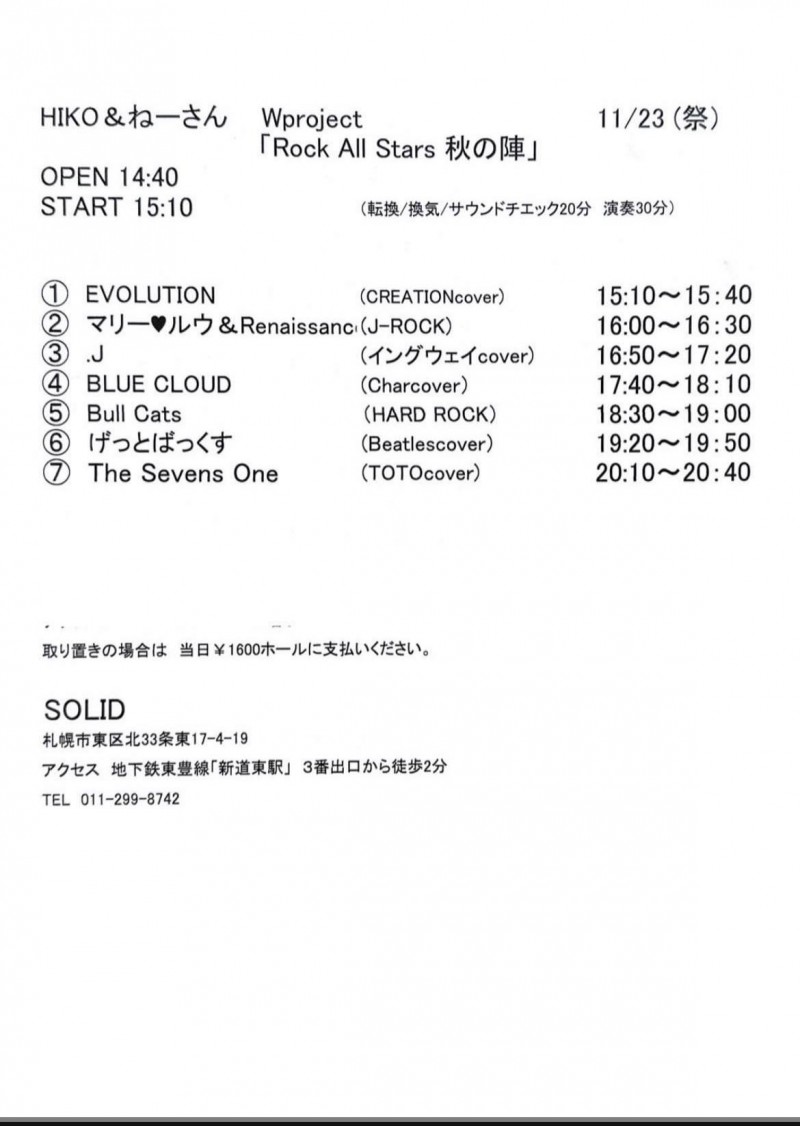 2023年11月23日(木・祝)ライブを行います。